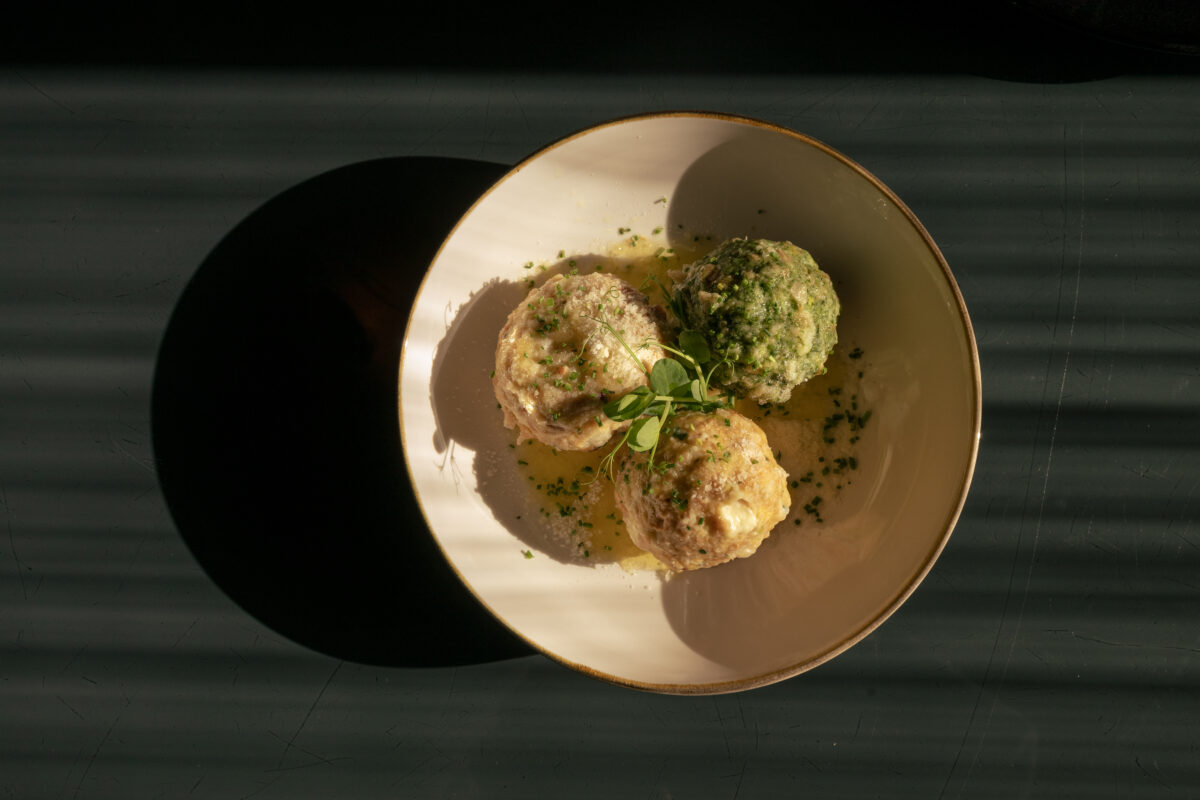 Tris „Tirolese“ ravioli agli pinaci / canederlo di formaggio / canederlo rapa rossa